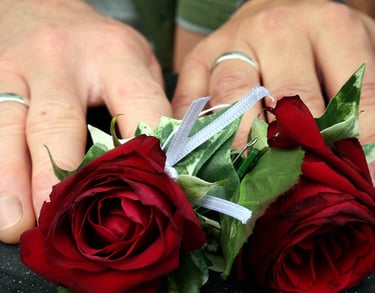 Preparación de las Rosas: Se eligen dos rosas frescas y hermosas, generalmente de un color que tenga un significado especial para la pareja o que complemente el tema de la boda.